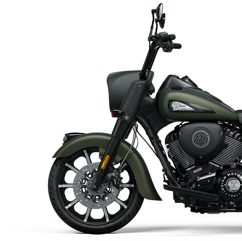 The Indian Springfield Dark Horse is for those want more. With a streamlined stance, powerful V-Twin engine, and sinister styling, it rides as powerfully as it looks.